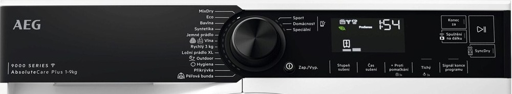 Sušička AEG TR9396CC série 9000 nabízímožnost propojení s pračkou pomocí mobilní aplikace. Na základě vámi zadaného programu praní zvolí sušička po zapnutí funkce SyncDry nejvhodnější program k sušení.