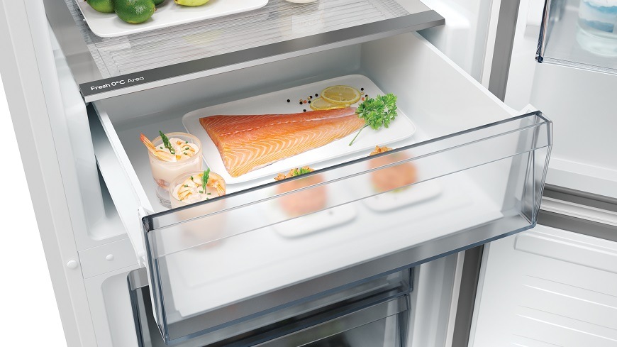 V zásuvce Fresh 0 °C Area můžete nastavit nulovou zónu. Režim 0° je ideální pro ryby a maso, a když jej vypnete, získáte prostor zásuvky pro uskladnění potravin, které potřebují být odděleně.