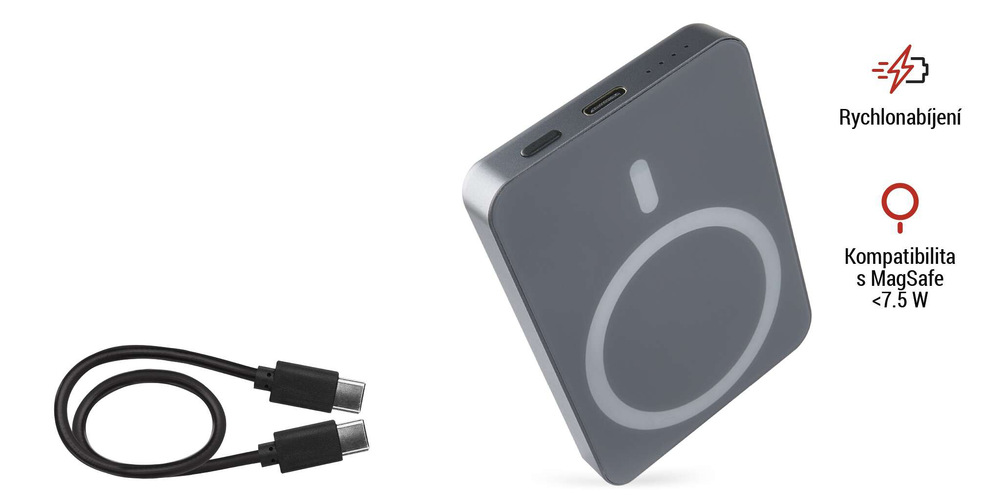 Kompaktní a lehkou powerbanku EMOS WI 522 můžete mít neustále po ruce, abyste si v průběhu dne zajistili dostatečnou energii pro svá drobná elektronická zařízení včetně smartphonu či tabletu. Přístroj nabízí kapacitu 5 000 mAh a můžete ho používat jak pro kabelové nabíjení přes USB-C, tak i pro bezdrátové dobíjení. S podporou rychlého nabíjení Power Delivery stačí několik málo minut, abyste baterii dodali dostatek energie pro další hodiny provozu. Powerbanka je vyrobena z odolného hliníku a její bezchybný provoz zajišťuje pokročilá ochrana proti přehřátí, přepětí i zkratu. Díky univerzálnímu provedení ji lze používat pro dobíjení celé řady zařízení od různých výrobců, a to včetně Apple přístrojů s podporou bezdrátového nabíjení MagSafe.