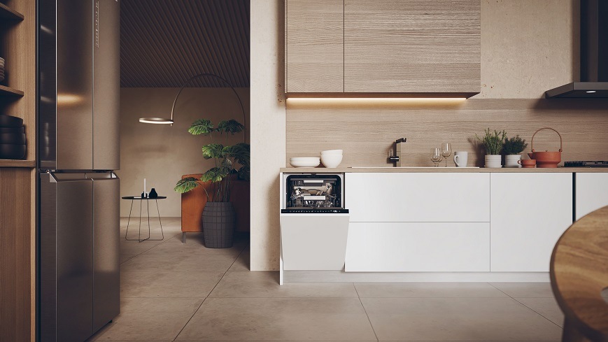 vestavná myčka • plně integrovaný panel • šířka 45 cm • příborová zásuvka • 11 sad nádobí • energetická třída C • hlučnost 43 dB • světelný paprsek signalizace času • automatické otevírání dvířek • 20 let záruka na motor • aplikace hOn • přídavné sušení Extra Dry • antibakteriální ošetření vnitřních částí • polohování horního koše Easy-Click • bezpečnostní prvky: Aquastop proti přetečení • V × Š × H: 81,6 × 44,8 × 57,5 cm •